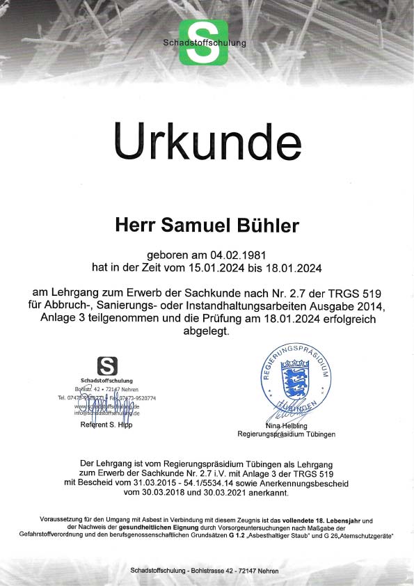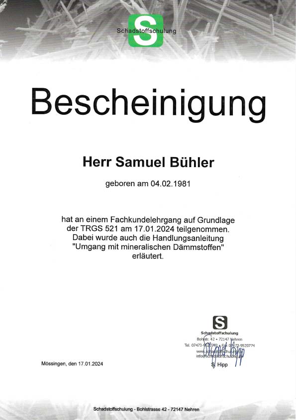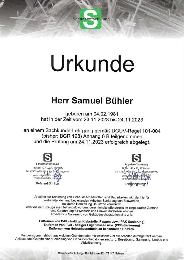 - Schadstoffgutachten: Fachgerechte Analyse von Baumaterialien und Umgebungen.